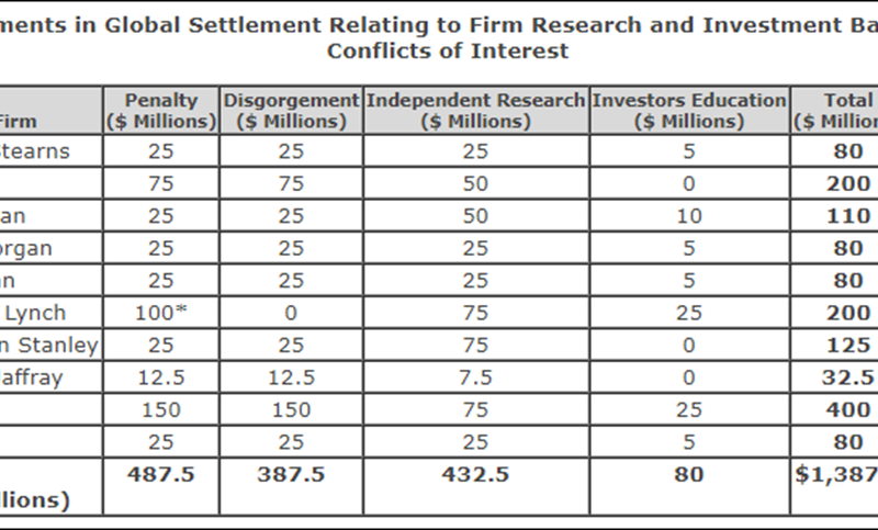 Așadar, dragii mei, statul american i-a prins pe experții aduși de Dan Ioan Popescu că au emis rapoarte frauduloase, că au publicat rapoarte care ignorau principiile tranzacționării corecte, că au impus penalizări exagerate și negarantate propiilor clienți și că au fost angajate în „oferirea de acțiuni sub preț, subevaluate” la anumite oferte publice. Statul american, fiind un stat transparent, a făcut publice toate aceste detalii pe data de 28 aprilie 2003, adică cu câteva luni înainte ca ministrul Popescu să îi aleagă pe geniile malefice de la CSFB în vederea privatizării Petrom. Lista amenzilor pe care au fost de acord să le plătească băncile de investiții găsite vinovate este cât se poate de elocventă pentru ceea ce avea să urmeze în timpul crizei financiare globale începută în 2007 în America: figura 2.