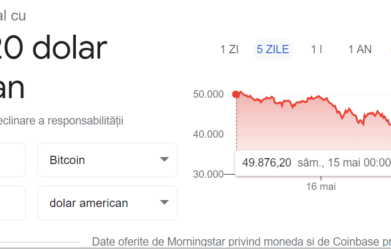 În valoare de aproximativ 40.000 de dolari, miercuri, bitcoin a pierdut circa 17.000 de dolari de la începutul săptămânii trecute şi s-a depreciat cu aproape 40% față de nivelul istoric de 64.870 de dolari, atins în data de 14 aprilie.