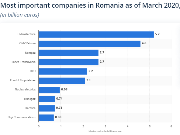 Dacă am vrea să ne comparăm și cu alții și ne-am opri acolo unde o facem de obicei, la Polonia, am vedea că cea mai mare firmă poloneză este o bancă listată la bursa de la Varșovia (Pko Bank Polski , 10 miliarde de dolari capitalizare), urmată de Pkn Orlen ( 7 miliarde de dolari capitalizare, procesează 35 de milioane de tone de țiței anual), de producătorul de jocuri video CD project ( peste 7 miliarde de dolari ca valoare), de compania de asigurări Powszechny Zaklad Ubezpieczen SA (5 miliarde de dolari valoare de piață), de furnizorul de televiziune digitală Cyfrowy Polsat ( tot peste 5 miliarde de dolari valoare de piață), de compania gazeiferă Polskie Gornictwo Naftowe i Gazownictwo (astăzi cu o valoare de 8,5 miliarde de dolari), de compania minieră KGHM Polska Miedz (cupru și argint, aproape 10 miliarde de dolari evaluare astăzi), de banca Mbank (peste 2 miliarde de dolari valoare de piață) și de compania textilă LPP SA (peste 4 miliarde de dolari valoare de piață, cea mai mare din Europa Centrală și de Est).