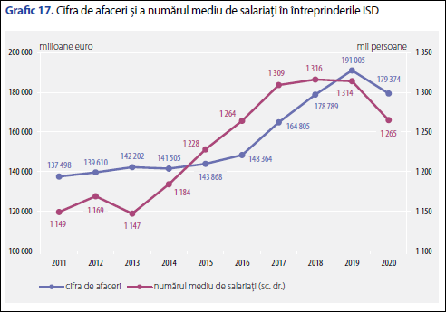 Scăderea mai accentuată a cifrei de afaceri realizate de întreprinderile ISD în anul 2020