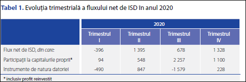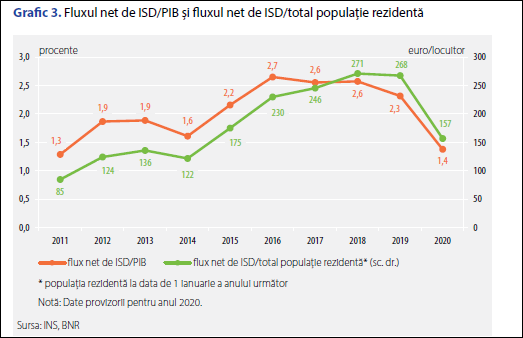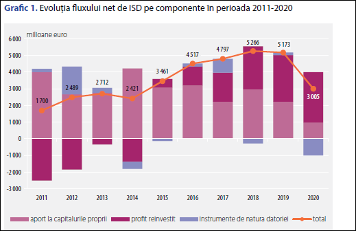 valoarea PIB.În anul 2020, fluxul net de ISD a înregistrat nivelul de 3, 005 miliarde de euro, în scădere