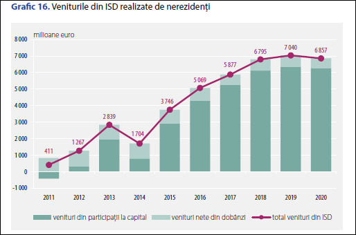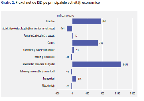 următorii doi ani, acestea au înregistrat valori negative, diminuând cu 425 milioane euro (2014), respectiv 134 milioane euro (2015), fluxul net de ISD. Cea mai mare