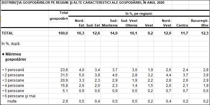 Cea mai populată regiune a românei este cea de Nord Est (Moldova fără Galați și Vrancea), unde trăiesc unul din șase români: