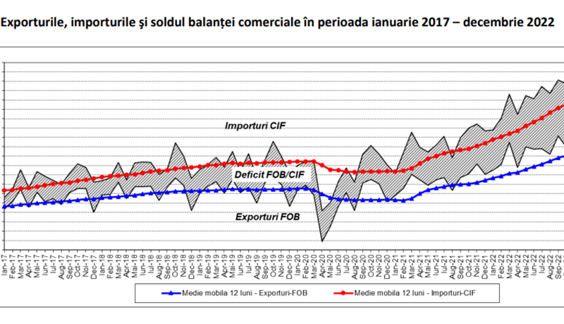 Consecința imediată a celei mai scumpe electricități pentru industrie din Europa a fost, pentru noi, recordul absolut (35 de miliarde de euro) al deficitului comerțului internațional cu bunuri, o valoare nemaiîntâlnită în istorie.