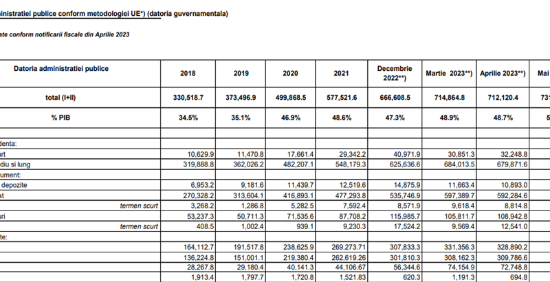 Astăzi, după numai șase luni din anul 2023, deficitul bugetar este deja de peste 37 de miliarde de lei și reprezintă, deja, 2,34% din PIB! Veniturile pe primele șase luni din acest an au ajuns la 243 de miliarde de lei, iar cheltuielile la 280 de miliarde de lei. (sursa: https://mfinante.gov.ro/static/10/Mfp/buletin/executii/bgc30062023.pdf ).