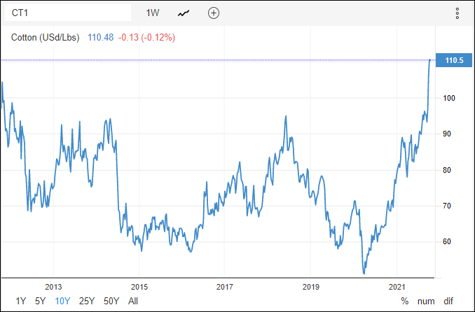 Vă vine sau nu să credeți, lumea trăiește în aceste zile o criză a bumbacului. recent, în septembrie, această materie primă esențială pentru industria textilelor a atins un preț incredibil: 114,69 dolari americani/livra (0.45359237 kg), preț nemaiîntâlnit în ultimii 10 ani. Motivul? Creșterea masivă a importurilor de bumbac american (cu 83%) în China, acolo unde bumbacul se transformă în produse textile și se vinde înapoi în America. Anul trecut, președintele Trump a interzis importul de bumbac american pentru două companii chinezești, Xinjiang Production și Construction Corps, acuzându-le că folosesc forța de muncă a deținuților uiguri (musulmani).