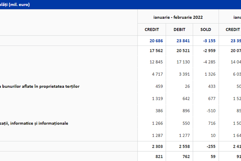 Ei bine, avem și un mic semnal pozitiv: deficitul de cont curent este mai mic pe primele două luni ale acestui an decât pe primele două luni ale anului trecut cu jumătate de miliard de euro. E mult, e puțin? Este, deocamdată, un semn de reducere a turației economiei: atunci când deficitul comercial scade cu 800 de milioane de euro, e semn că economia consumă mai puțin. Deci pe undeva este semn rău, în sensul în care indică contracție dar, pe de altă parte, este un semn bun că se mai corectează un pic înspăimântătorul deficit comercial. ca și cel de cont curent.