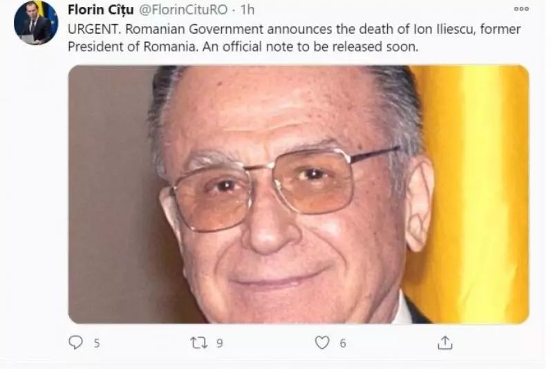 Farsă macabră pe Twitter. Un cont FALS cu numele lui Florin Cîțu a anunțat moartea lui Ion Iliescu