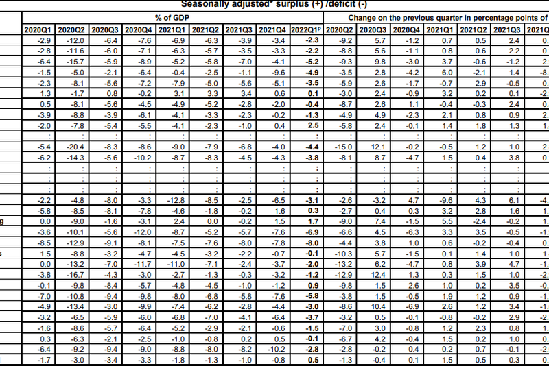 https://ec.europa.eu/eurostat/documents/2995521/14644638/2-19072022-AP-EN.pdf/fff35147-c9b3-a915-7bf0-b09202bbd130?t=1658145352807Nici aici România nu stă mai rău ca alții, cu o rata armonizată a inflației anuale de 13%, 7-a cea mai mare din Uniune.Suntem, în schimb, printre campionii europeni la deficit bugetar. Dacă vorbim de cel ajustat sezonier, cu -5,8% din PIB la sfârșitul trimestrului I ne găsim pe locul III în UE, după Malta și Ungaria :