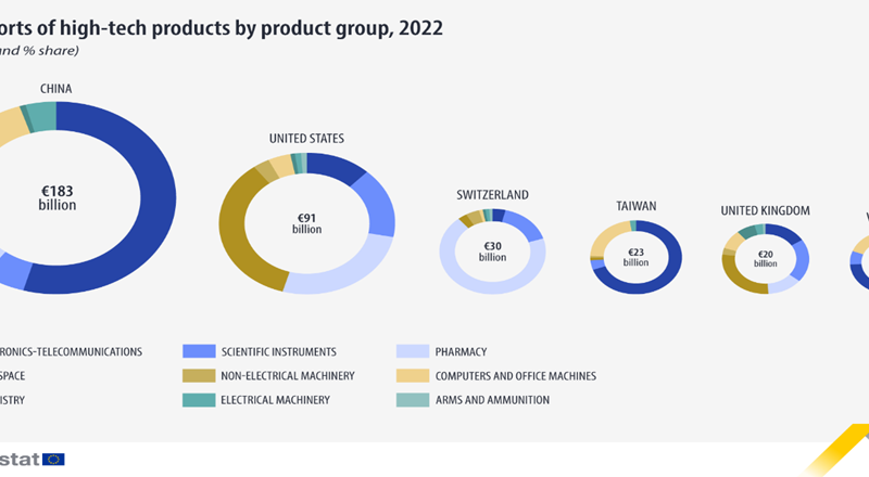 Rezultatul? UE a importat în 2022 produse de înaltă tehnologie în valoare de 482 de miliarde de euro, cu un deficit de 36 de miliarde de euro. Și pentru a nu-și dezminți comicul absolut, Ursula comica, cea care ne tot promite că vom termina curând cu importurile din China, iată că 38% din importurile de înaltă tehnologie ale Uniunii au provenit taman din.... China: