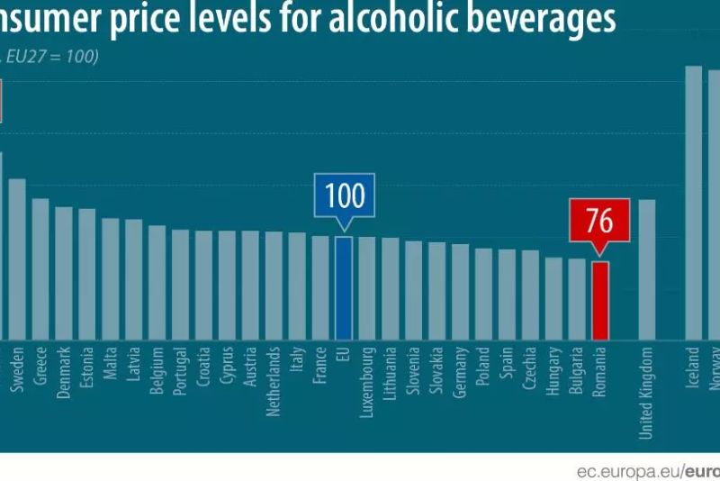 România este țara cu cele mai ieftine băuturi alcoolice din Uniunea Europeană, la jumătate de preț față de cele din Finlanda, de exemplu, potrivit datelor publicate, marți, de Eurostat.