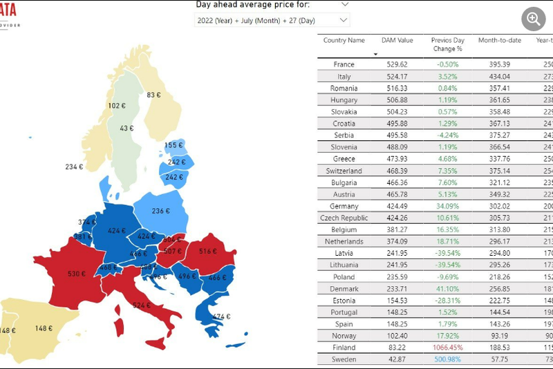 România a avut, pe 27 iulie 2022 , al doilea cel mai mare preț la piața energiei electrice pentru ziua următoare (PZU): 516 euro/MWh. Doar Franța a avut un preț mai mare în ziua respectivă. Și nu este nicidecum o premieră. În multe din zilele anului acesta am avut chiar cel mai mare preț din Europa pe piața zilei următoare.: