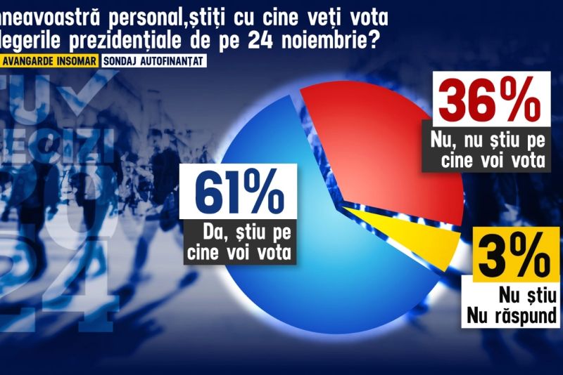 Întrebați dacă au decis cu cine vor vota la prezidențialele din 24 noiembrie, marea majoritate a celor intervievați au declarat că știu deja pe ce candidat vor pune ștampila de vot.