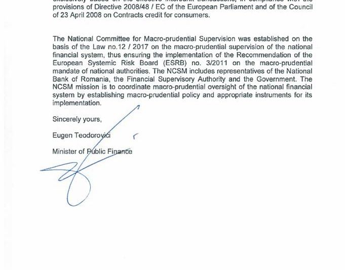 Scrisoarea trimisă agenţiei Standard&Poor's de către ministrul Finanţelor Eugen Teodorovici nu face nicio referire la întâzierea adoptării bugetului de stat ca posibilă cauză de dezechilbu economic ce ar putea duce la reducerea ratingului de ţară. Documentul trimis de Teodorovici a fost postat pe reţelele de postat pe Facebook de către deputatul USR Claudiu Năsui