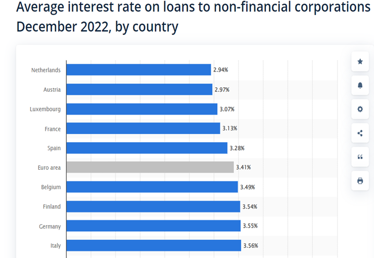 Sursa: https://www.statista.com/statistics/1315830/interest-rates-on-business-loans-in-the-euro-area-by-country/