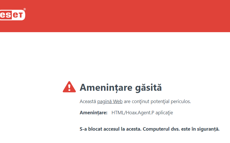 Cele 2 linkuri ascund amenințări, iar aplicațiile antivirus le blochează.