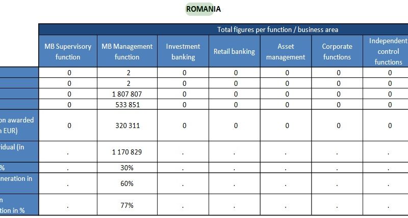 Doar doi șefi de bănci din România câștigă mai mult de 1 milion de euro pe an, situație în descreștere față de anul anterior, când erau trei bancheri autohtoni în categoria "high earners", potrivit unui studiu al Autorității Bancare Europene (EBA).