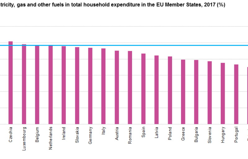 Între 2007 și 2017, în majoritatea statelor membre, a crescut ponderea costurilor pentru, ”casă, apă, electricitate, gaze și alți combustibili" în totalul cheltuielilor gospodăriilor.În 2017, gospodăriile din Uniunea Europeană (UE) au cheltuit peste 2 000 de miliarde de euro (echivalentul a 13,1% din PIB-ul UE) pentru locuințe, apă, electricitate, gaze și alți combustibili. Acestea reprezintă 24,2% din cheltuielile totale de consum. Este de departe cel mai mare element de cheltuieli al gospodăriilor populației din UE, înaintea celor de transport (13,0%), pentru alimente și băuturi nealcoolice (12,2%), sau restaurante și hoteluri (8,8%), și cultură (8,5%).Din totalul cheltuielilor gospodăriilor, cheltuielile gospodăriilor populației au avut cea mai semnificativă creștere a cheltuielilor în ultimul deceniu. Creștere a fost de la 22,7% din totalul cheltuielilor gospodăriilor populației în 2007 la 24,2% în 2017 (sau +1,5 puncte procentuale - pp).Cu cât mai spre Nordul Europei cu atât mai mare scumpirea. În Finlanda aceste costuri au crescut de la 24,0% din cheltuielile totale ale gospodăriilor, în 2007, la 28,8% în 2017, conform datelor Eurostat, publicate vineri.La polul opus se situează Slovacia cu o scădere de 2,6 puncte procentuale (de la 26,3% în 2007 la 23,7%) în 2017.