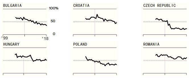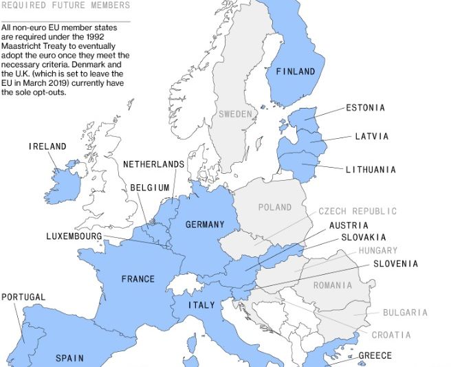 . Aceștia au suferit în mod substanțial de pierderea capacității de a devaloriza atunci când s-au confruntat cu crize, iar competitivitatea lor s-a deteriorat. Chiar și în anii de dinainte de criză, cele trei națiuni nu au reușit să valorifice uniunea monetară prin aprofundarea relațiilor comerciale din bloc - și doar Spania a început să schimbe acest lucru recent.Cu toate astea, spaniolii și francezii sunt cei mai mari fani ai monedei europene, cu o adeziune de peste 60%.Dintre țările care și-au propus să treacă la euro la un moment dat, doar românii sunt fani declarați ai renunțării la moneda națională. Sondajele efectuate începând cu anul 2012 arată doar 35% dintre polonezi și 23% dintre cehi, în medie, doresc să treacă la moneda europeană.La fel de mulți maghiari nu vor să renunțe la monedele naționale. Dintre țările eligibile pentru aderare, numai în România sprijinul popular depășește 60%, arată Bloomberg.
