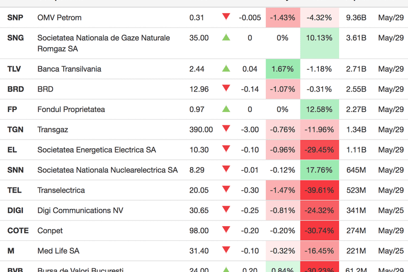 Tabel constituenți indice BET, sursa: tradingeconomics.com