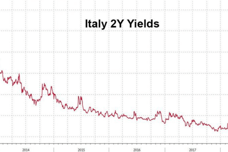 Tensiunile din piețele vest-europene s-au intensificat în sesiunea curentă de tranzacționare, efectele crizei politice din Italia răsfrângându-se pe întreg continentul. Nu a existat indice bursier care să reușească să se situeze în zona de câștiguri, încheindu-se astfel o sesiune roșie cu accente de panică pe anumite titluri italiene.DAX30 din Germania a scăzut cu 1,53% la 12.666 de puncte, FTSE100 de la Londra și CAC40 din Franța cu aproape 1,3% la 7.632, respectiv 5.438 de puncte, în timp ce indicele Italiei, MIBTEL, a fost unul dintre performerii negativi ai sesiunii curente, plonjând cu 2,65% la doar 21.350 de puncte.Italia, a treia economie din zona euro a fost lipsită de un guvern în urma votului neconcludent de la începutul lunii martie, cu grupările politice anti-sistem și extremiste Mișcarea de 5 Stele și Liga Nordului abandonând eforturile de formare a unei coaliții în weekend pe fondul disputei cu șeful statului. Președintele Sergio Mattarella a refuzat să-l nominalizeze pe euroscepticul Paolo Savona pentru funcția de ministru al economiei, din această cauză declanșându-se criza politică și instituțională.În afară de scăderea consistentă a bursei milaneze, una dintre cele mai acute consecințe a avut loc pe piața titlurilor de stat italiene, acestea consemnând creșteri abrupte ale randamentelor, așa cum se poate vedea în graficul următor: