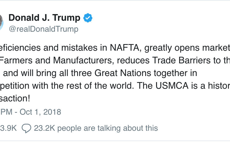 Așa cum se poate constata și din graficul de mai sus, balanța de plăti a Statelor Unite a înregistrat un deficit în creștere în anii recenți, de la o valoare medie de 40 de miliarde de dolari pe lună în perioada 2013-2016 ajungând în prezent la 50 de miliarde de dolari, adică o creștere de 25%.Chiar dacă efectele economice rezultate în urma diferitelor conflicte comerciale inițiate de Trump au fost negative sau, în cel mai bun caz, nule, toate aceste aspecte vor fi teme principale în campania electorală republicană pentru alegerile legislative parțiale ce vor avea loc în noiembrie. În acest context trebuie privite declarațiile triumfaliste ale liderului populist de la Casa Albă.