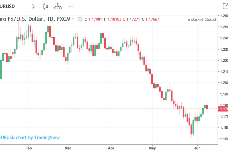 Grafic zilnic Euro în raport cu dolarul, sursa: tradingeconomics.com