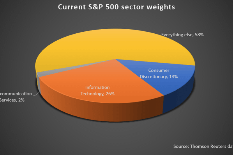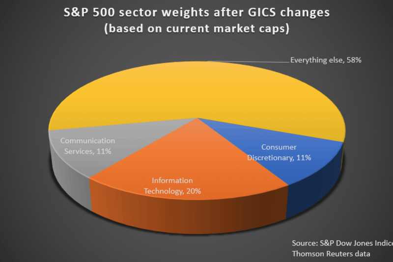 Ponderea viitoare în indicele S&P500, sursa: reuters.comFondurile tranzacționate la bursă (ETF-uri) care urmăresc în mod pasiv indicii sectoriali au aproximativ 89 de miliarde de dolari investiți în tehnologie, mai mult decât în orice alt sector, potrivit datelor furnizate de Thomson Reuters Lipper.Tranzacționarea ar putea fi volatilă, în special vineri, 21 septembrie, pentru acțiunile suspuse mutărilor, ca urmare a mișcărilor de ajustare a portofoliilor unora dintre ETF-urile pe tehnologie împreună cu fondurile axate pe indici și subindici din sectoarele de consum discreționar și telecomunicații.