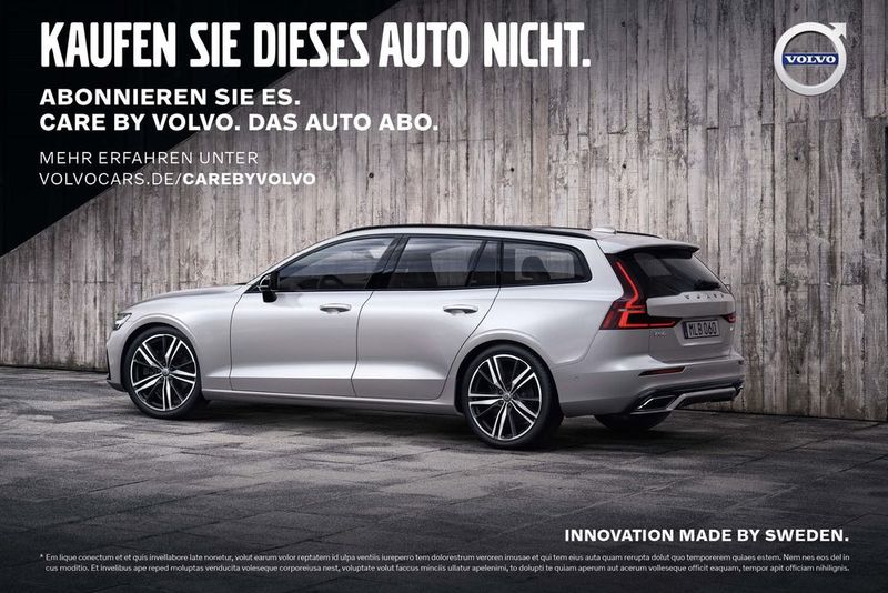 Producătorul auto Volvo a ales o strategie publicitară neobişnuită în Germania. Mesajul principal transmis publicului este "Nu cumpăraţi această maşină". Ce se ascunde în spatele acestei campanii de advertising? Noua campanie Volvo din Germania surprinde la prima vedere. Mesajul publicitar spune: "Nu cumpărați această mașină", potrivit Bloomberg. Sloganul nu face parte din strategia clasică de marketing de tip "nu face niciodată acest lucru", ci se potrivește cu planul Volvo de a-i convinge pe șoferi să treacă la "abonamente" (subscriptions), asemănătoare cu cele de la Netflix sau Spotify.Practic, clienții sunt convinşi să îşi achiziţioneze maşina prin "subscripţii": plătesc o singură factură lunară care acoperă diverse taxe și reparații - un plan prin care Volvo speră să vândă jumătate din producția proprie până în 2025.