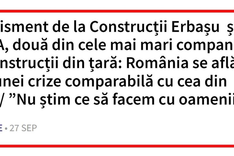 „Am explicat că este riscant să iei credit imobiliar. Azi, două mari firme de construcții spun că simt că suntem ca în 2008. Woow”, a scris Georgescu, într-o altă analiză.