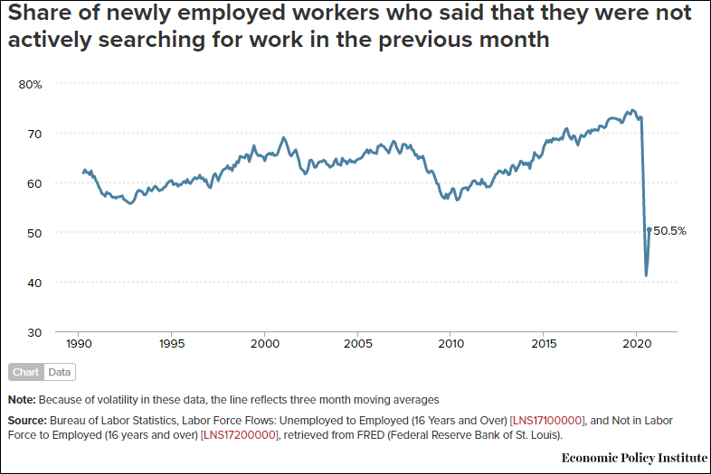 https://www.epi.org/indicators/unemployment/Iar trei sferturi dintre americanii care lucrează nu se aflau în căutarea unui loc de muncă (deci erau mulțumiți), atingând cel mai înalt nivel al acestui indicator de când se calculează :