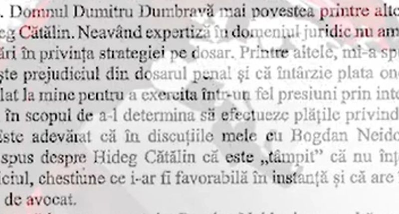 Cătălin Hideg: "Dl.Coldea spune că eu m-am dus la Dumitru Dumbravă înainte de a mă întâlni cu dânsul. Deci prima dată m-am întâlnit cu Florian Coldea la un restaurant, după care dânsul i-a dat OK-ul lui Neidoni, Neidoni l-a sunat pe Tocaci, care a vorbit cu Dumbravă care a stabilit prima întâlnire (cu Hideg - n.r.)".
