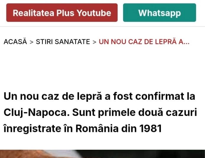 Un nou caz de lepră a fost confirmat la Cluj-Napoca. Sunt primele două cazuri înregistrate în România din 1981
