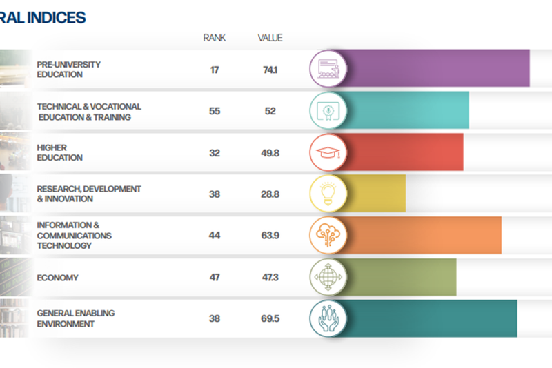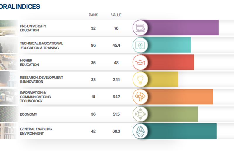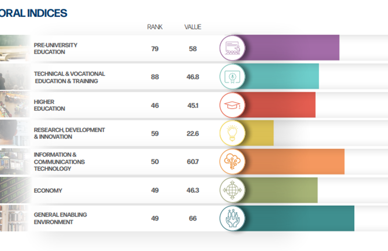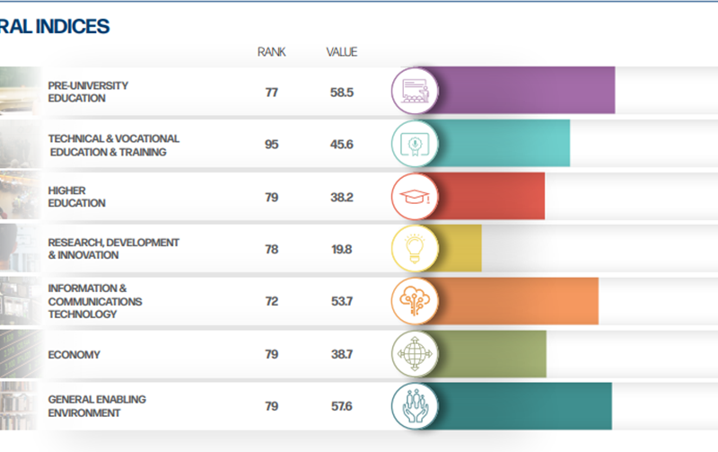 Apare clar și aici tiparul unei catastrofe în educația tehnică și vocațională (locul 95 global), dar și în starea generală a economiei (locul 79), a educației universitare (locul 79) și a modului de ierarhizare a valorilor (locul 79). Nici la cercetare-dezvoltare-inovare nu stau prea bine frații noștri (locul 78) și nici la educația pre-universitară (locul 77). Cel mai bine se plasează la indicatorul legat de industria IT&C (locul 72 mondial).