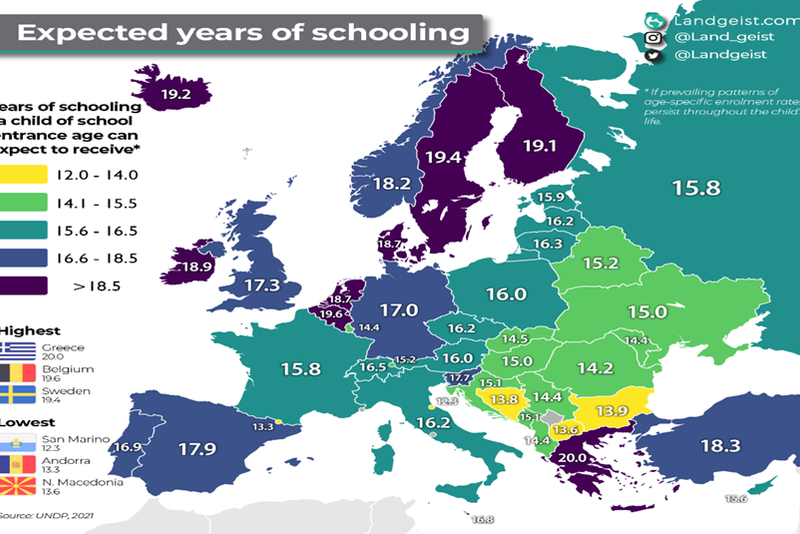 Sursa: https://landgeist.com/2023/06/17/expected-years-of-schooling-in-europe/#:~:text=Greece%20has%20the%20highest%20expected,between%2016%20and%2019%20years.