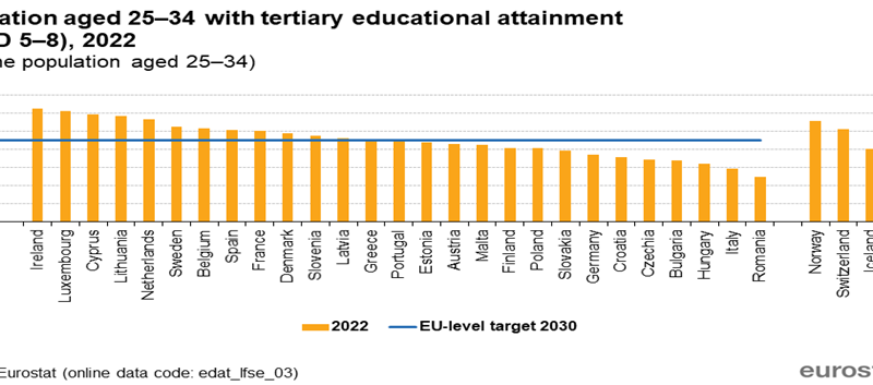 A patra vulnerabilitate: avem cea mai mică pondere din UE a tinerilor cu studii superioare și cea mai mică pondere din UE a celor cu titlul științific de doctor: