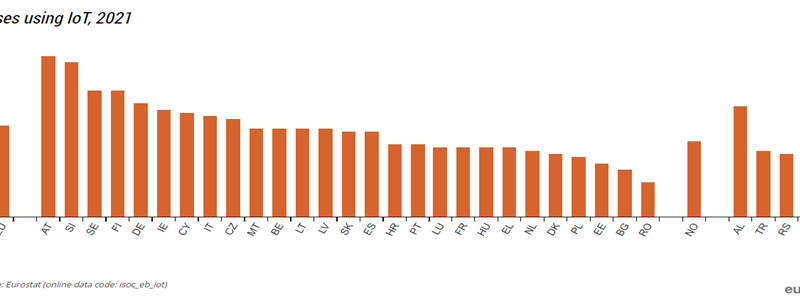 A șasea vulnerabilitate: avem cea mai mică pătrundere a tehnologiilor inteligenței artificiale (AI) și a „internetului lucrurilor- IoT” din Uniunea Europeană, cu doar 2,4 aplicații/milionul de locuitori: