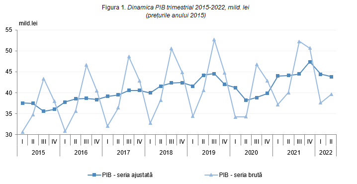O veste foarte proastă a venit de la Chișinău și a trecut neobservată la București: Produsul Intern Brut (PIB) al Republicii Moldova estimat pentru trimestrul II 2022 a însumat 64,3 miliarde lei moldovenești. Comparativ cu trimestrul II 2021, PIB s-a micșorat, în termeni reali, cu 0,9% pe seria brută și cu 0,6% pe seria ajustată sezonier :
