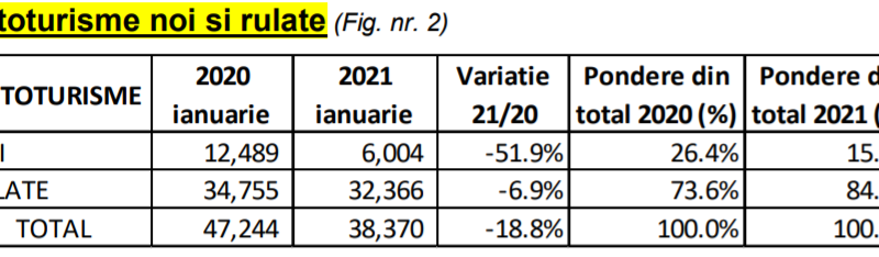 Scăderea semnificativă a fost în cazul înmatriculărilor de vehciule noi, care s-au redus cu mai mult de jumătate față de ianuarie anul trecut.