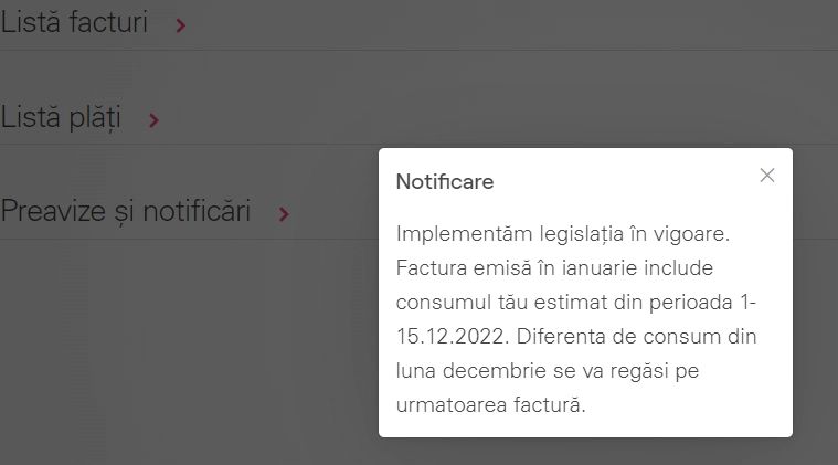 De altfel, unii furnizori și-au anunțat abonații că pe luna decembrie factura va fi defalcată.
