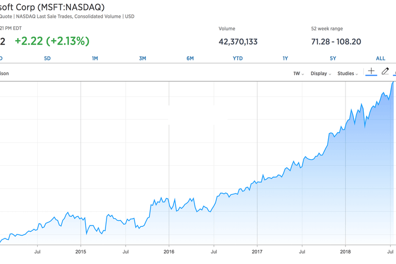 În timpul conducerii de 14 ani a lui Steve Ballmer, acțiunea Microsoft a avut, in principal, o evoluție laterală. Dar, din momentul în care Nadella a preluat șefia companiei, pe 4 februarie 2014, prețul acțiunilor aproape că s-a triplat, ajungând la o valoare care depășește 100 de dolari. Cu o valoare a pieței de peste 800 miliarde de dolari, Microsoft a devenit, în prezent, cea de-a patra companie din lume, după Apple, Amazon și Alphabet.