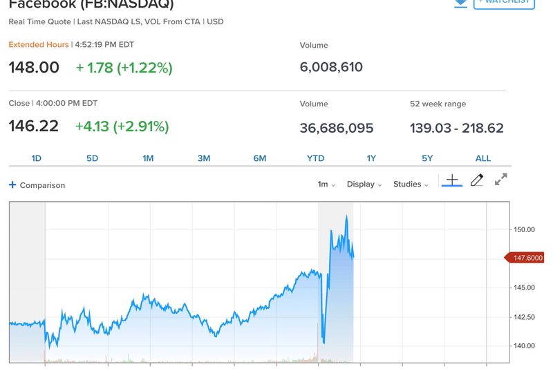 Facebook a raportat o cifră a profitului în creștere, dar o scădere pe linie în privința veniturilor, a utilizatorilor activi zilnic precum și a estimărilor lunare a utilizatorilor activi.Compania a raportat câștigurile sale aferente celui de-al treilea trimestru marți, după închiderea sesiunii de tranzacționare. Acestea au fost în valoare de 1,76 de dolari pe acțiune, peste estimările din piață care indicau 1,47 de dolari pe acțiune în timp ce veniturile s-au situat la nivelul de 13.73 de miliarde de dolari față de 13,78 de miliarde estimări.Numărul utilizatorilor activi zilnic a scăzut la 1,49 de miliarde față de 1,51 de miliarde, conform datelor furnizate de CNBCUn alt indicator important, venitul mediu pe utilizator, s-a situat la 6,09 dolari, în linie cu estimările din piață.